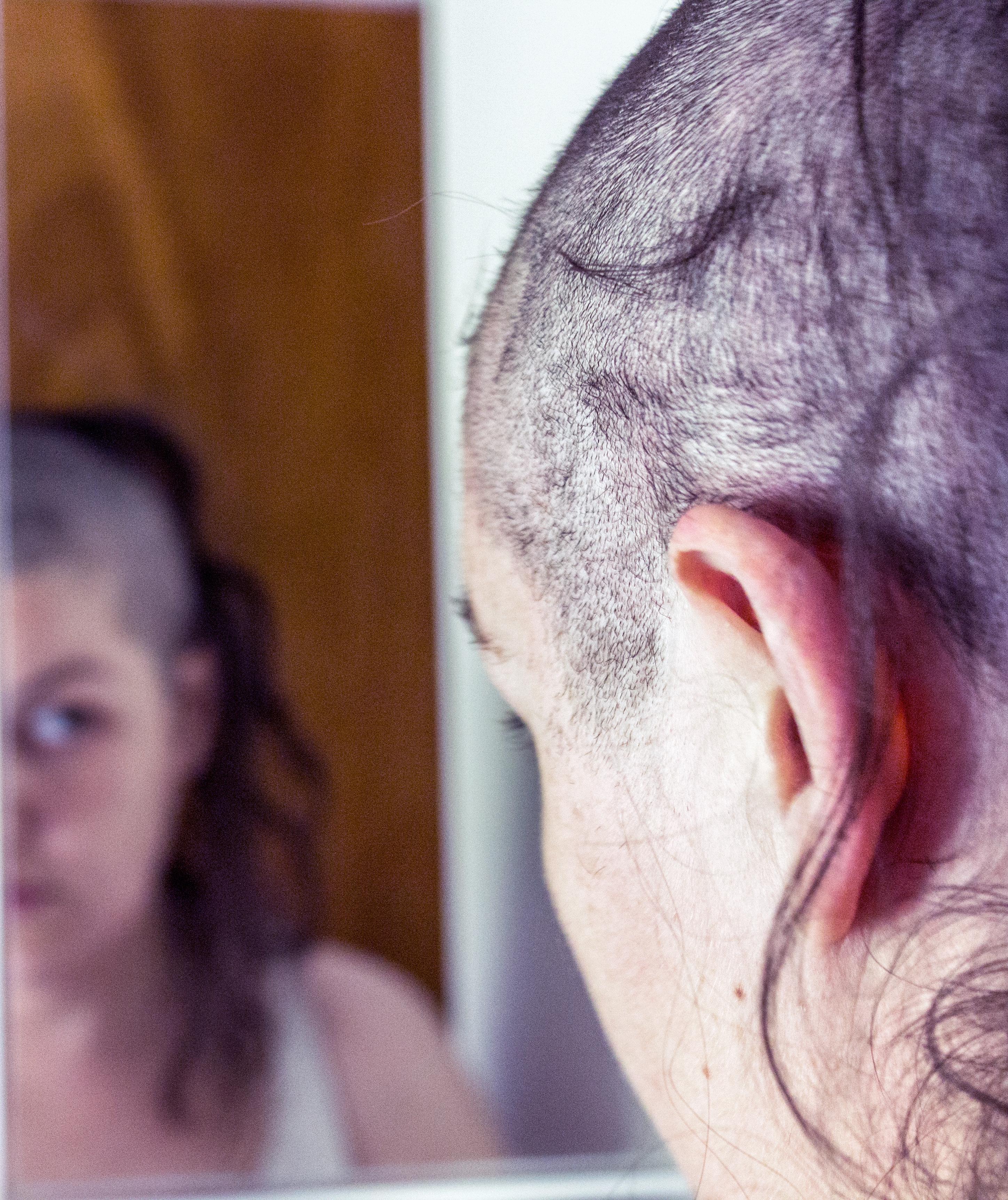 This piece explores a re-enactment of the time I was in-patient at Northwestern Memorial Hospital in Chicago, IL. I lost my hair from high doses of methotrexate (chemotherapy) administered for the experimental stem cell transplant I underwent, in attempt to “cure” multiple sclerosis. I was inpatient for 22 days and became a prisoner to the hospital, corporeal body, and mind, as well as an experimental lab rat to the doctors. My life was confined to a small cubicle of space that became my refuge as well hell.